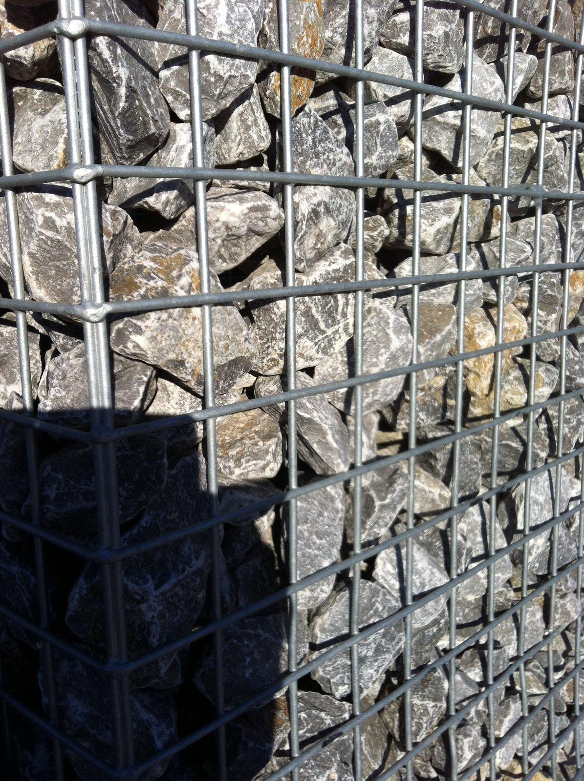 Der deutsche Kalkstein ist ein schöner mausgrauer Stein, den Sie einfach in die Gabionen schütten können. Dieser Stein stammt aus einem Kalkstein-Steinbruch in Deutschland.