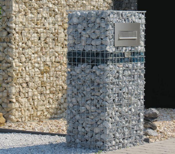 Möchten Sie Ihre Post sofort finden, wenn Sie nach Hause kommen? Dann ist ein Gabionen Briefkasten oder Postbox nicht nur eine praktische, sondern auch eine stilvolle Wahl. Der Schlitz ist in einer Säule verborgen, die die Form eines Steinkorbs hat.