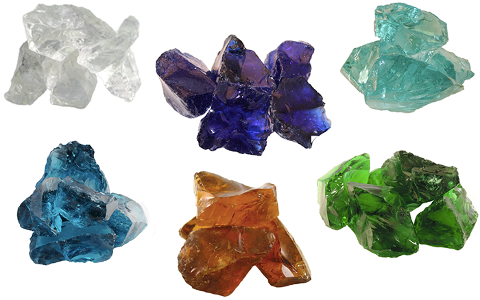 Es gibt Glasbrocken außerdem die Farben Kristall, Ozeanblau, Kobaltblau, Grün, Bernstein und Türkis.