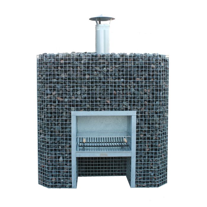 Den Eckkamin Grill XL mit Steine an der Rückseite können Sie ganz einfach neben Ihre Gabionen oder eine Steinwand aufstellen. Dieser komplett vormontierte Kamin wird Ihnen einschließlich gratis Grillrost geliefert. Am richtigen Ort aufstellen, danach mit Bruchsteinen füllen und dann können Sie ihn sofort benutzen.