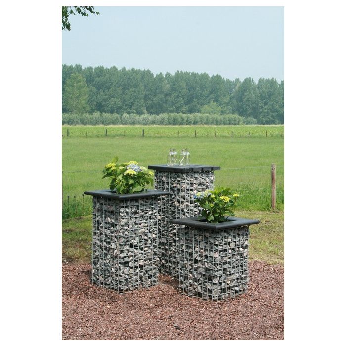 Wunderschöne Säulen aus Gabionen, in 3 verschiedenen Höhen erhältlich. Die Länge und Breite beträgt bei allen Säulen 40 cm. Sie können diese mit einem geschlossenen Deckel versehen und die Säule so als Tisch benutzen oder Sie entscheiden sich für eine Pflanzenumrandung, wodurch eine schöne Blumensäule entsteht.