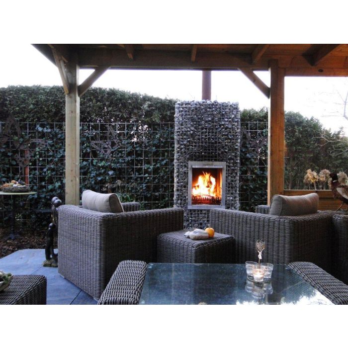 Den Gartenkamin/Grill mit Steinen an der Rückseite können Sie als eigenständiges Element oder zwischen den Gabionen aufstellen. Jetzt in 2 Höhen erhältlich. Dieser komplett vormontierte Kamin wird Ihnen einschließlich gratis Grillrost geliefert. Am richtigen Ort aufstellen, danach mit Bruchsteinen füllen und dann können Sie ihn sofort benutzen.