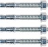 Standardmäßig geliefert mit 4 Stück Schwerlastdübeln von 10 mm. Für die Montage auf einem schmalen Fundament empfehlen wir die Verwendung der Chemischen Senkbolzen (Verbunddübeln) anstelle der Schlagbolzen. Mit Chemischen Senkbolzen (Verbunddübeln) verhindern Sie, dass das Betonfundament reißt. Bei Verwendung der Verbunddübel empfehlen wir eine gründliche Reinigung des Bohrlochs, damit eine gute Haftung des Gewindeendes gewährleistet ist.