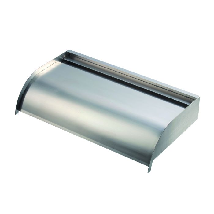 Ein sehr schöner und moderner Edelstahl-Wasserfall mit breitem Wasserauslauf. Diesen Design-Wasserfall bauen Sie ganz einfach in einen Steinkorb ein. Außerordentlich gut geeignet, um das Wasser über einen Filter in Ihren Teich zurückzuleiten. In Kombination mit einer Teichpumpe liefert Ihnen der Wasserfall einen schönen, breiten Wasserfilm, der praktisch geräuschlos in den Teich zurückfließt.